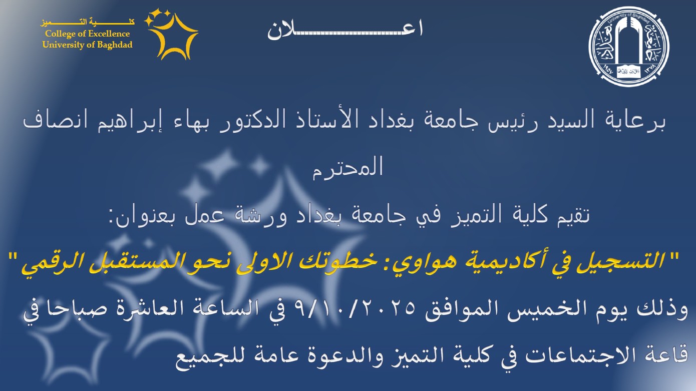 تقيم كلية التميز في جامعة بغداد ورشة عمل بعنوان