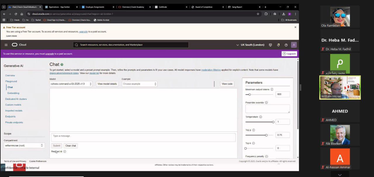 كما استعرضت الورشة آليات الانضمام إلى Oracle Academy، والمسارات التدريبية المتوفرة في مجالات قواعد البيانات، لغة Java، والذكاء الاصطناعي، إضافة إلى آليات المشاركة في المسابقات الطلابية، وطرق الحصول على شهادات احترافية معتمدة من Oracle.