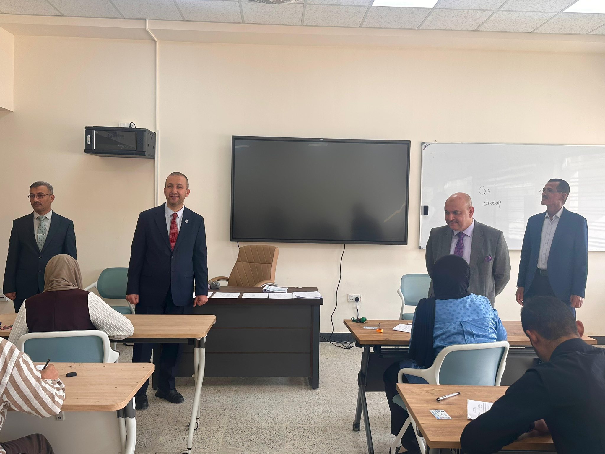 وتضمنت الزيارة جولة تفقدية في عدد من القاعات، اطلع خلالها على آلية توزيع الطلبة وانسيابية أداء الامتحانات ومدى الالتزام بالتعليمات والضوابط الامتحانية المعتمدة، مؤكداً أهمية توفير بيئة ملائمة تضمن أداء الطلبة لامتحاناتهم بكل انسيابية وشفافية.