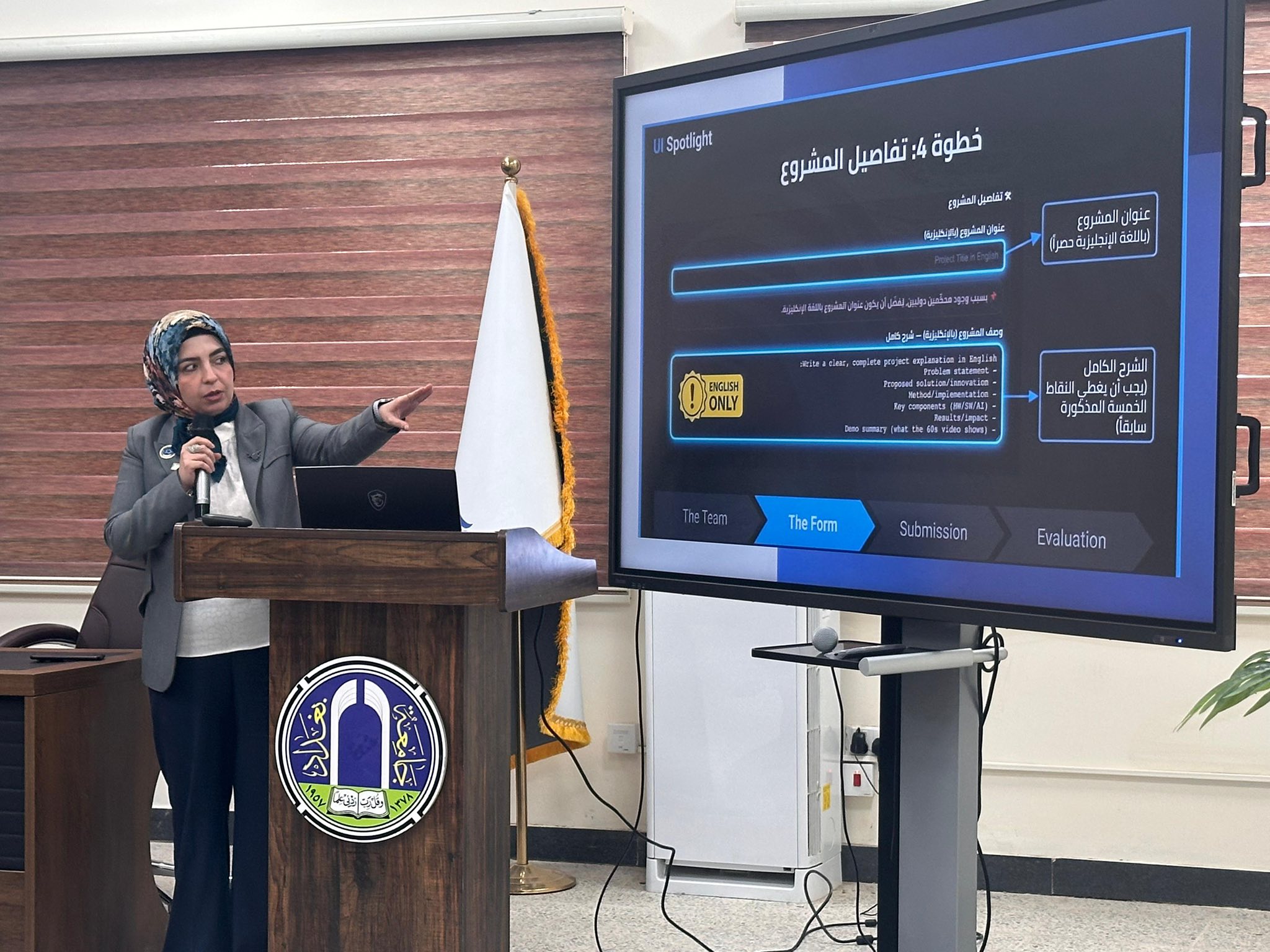 وقدّمت الورشة الأستاذ المساعد الدكتورة هبة محمد فاضل، رئيسة قسم علم البيانات في الكلية، حيث استعرضت بشكل مفصل مسارات البطولة وآلية المشاركة وشروط التقديم، فضلاً عن بيان الأهداف العلمية للمسابقة وأهميتها في تنمية مهارات الطلبة في مجالات الروبوتات وتطبيقات الذكاء الاصطناعي.