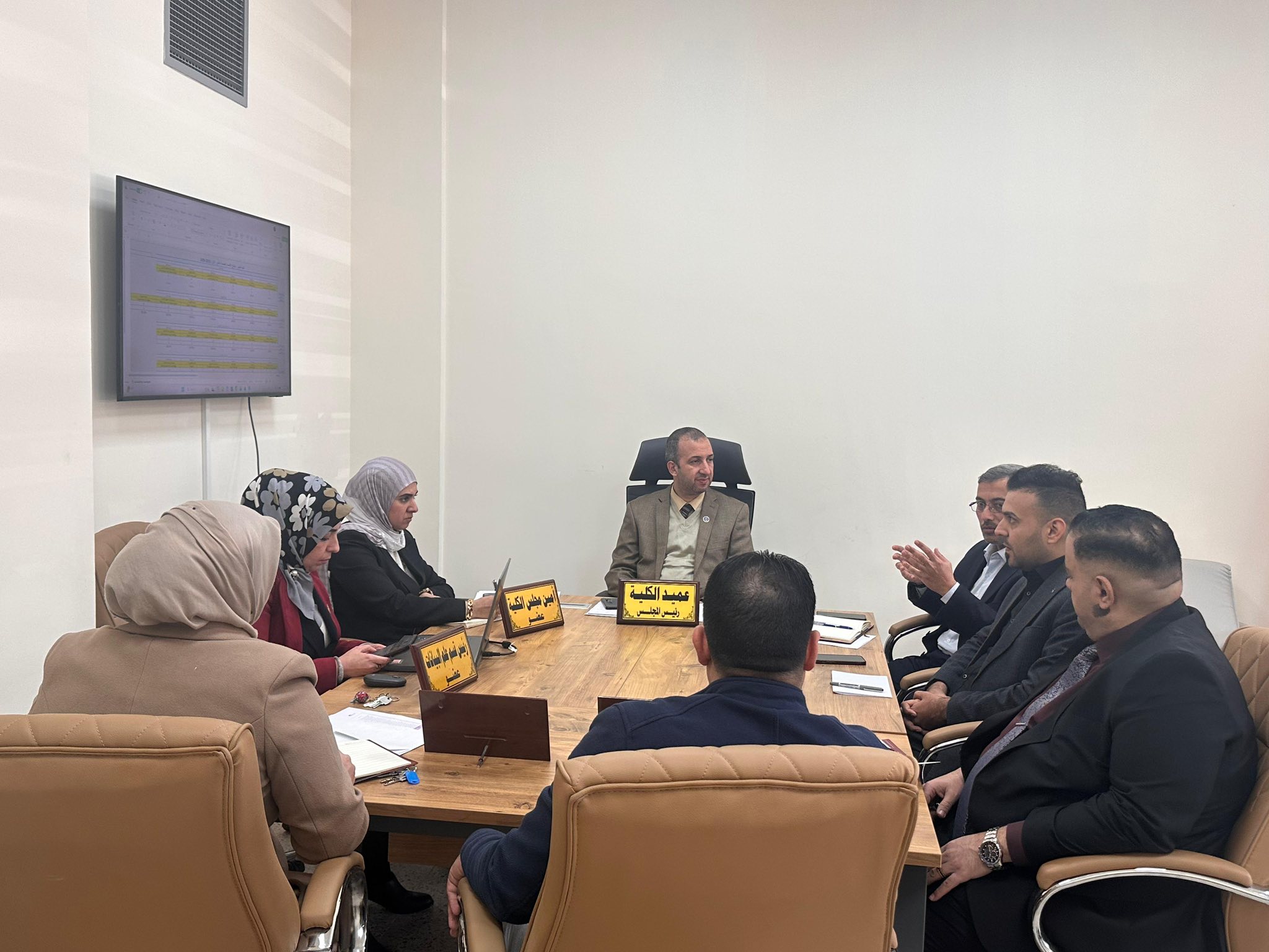 وشهدت الجلسة استعراض نتائج المرحلة الأولى، حيث جرت مناقشة تحليل النتائج وتوزيع الدرجات (Histogram) لمختلف المواد الدراسية، بهدف تقييم مستوى الأداء الأكاديمي للطلبة والوقوف على المؤشرات التعليمية التي تسهم في تطوير العملية التعليمية داخل الكلية.