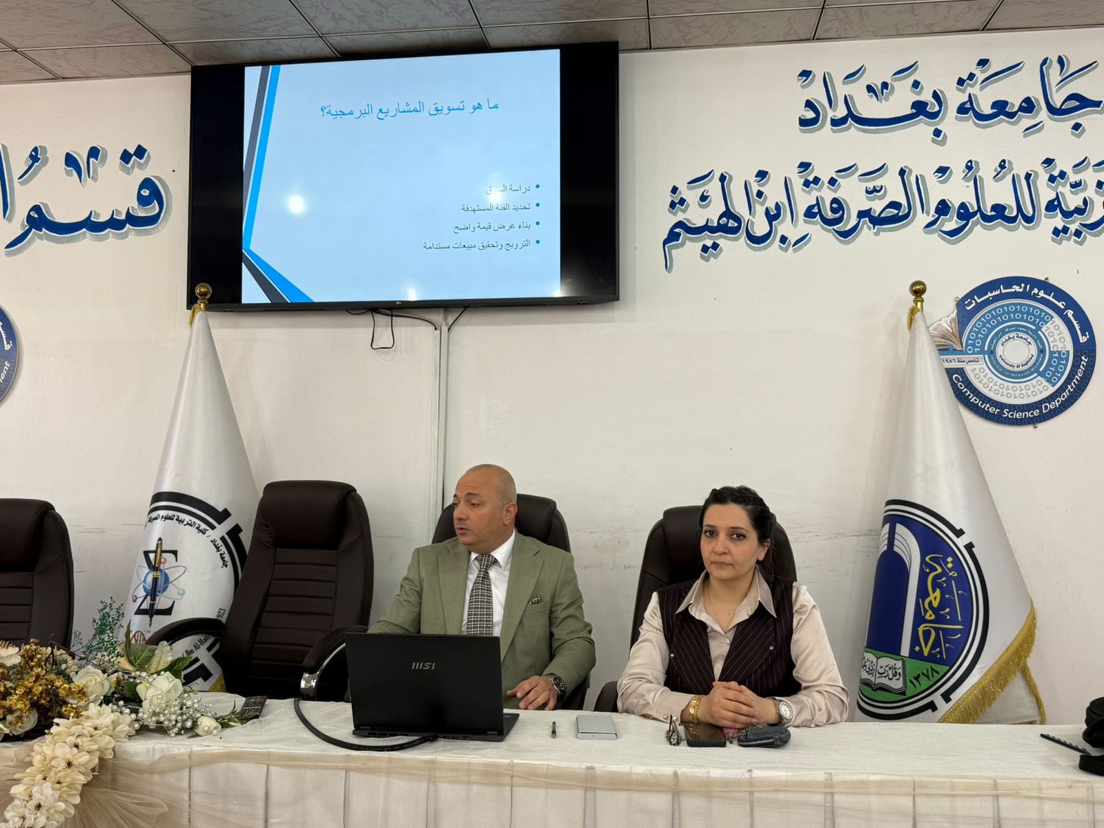 أقام التدريسي في كلية التميز بجامعة بغداد الأستاذ المساعد الدكتور علي يحيى غني ورشة عمل علمية بعنوان “تسويق المشاريع البرمجية” في كلية التربية للعلوم الصرفة ابن الهيثم بجامعة بغداد وبمشاركة المدرس هبة عادل يوسف.